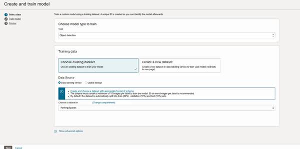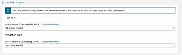 - Validation Dataset: select dataset from object storage bucket