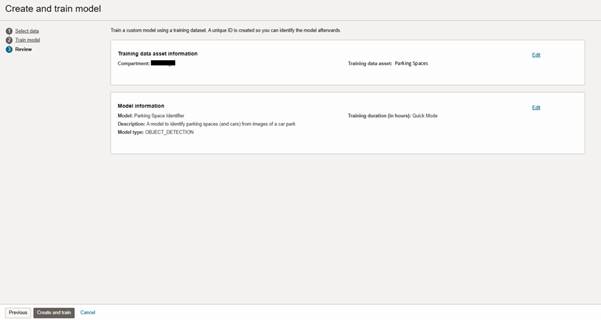 However, if all is as expected, click Create and Train to kick-off the model training process.