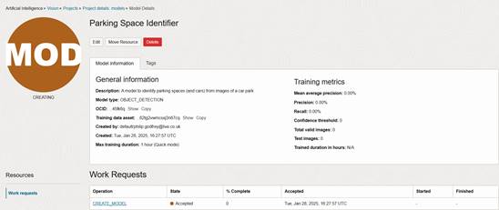 Once completed, you will see the model has been created and trained successfully.